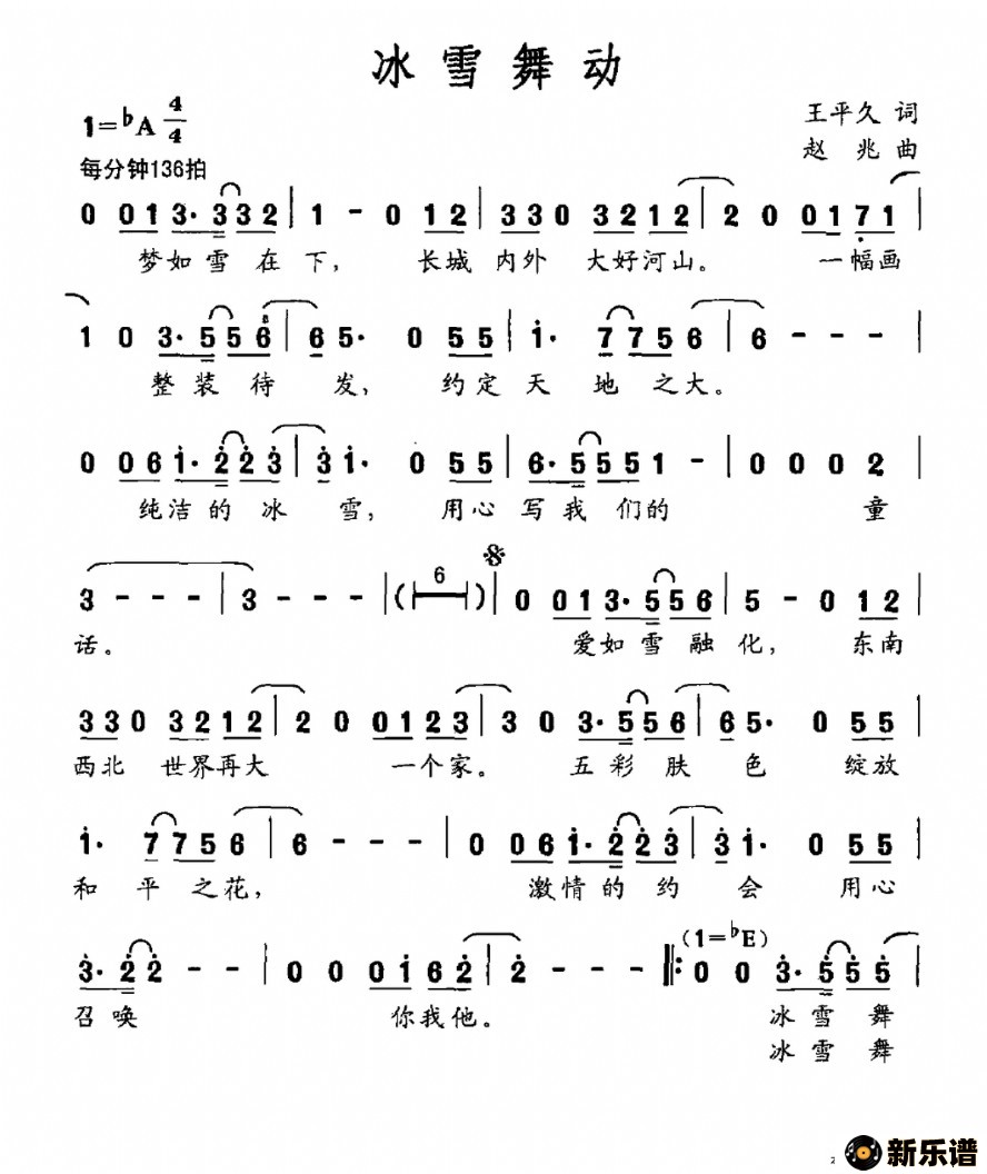 > 冰雪舞动最新曲谱