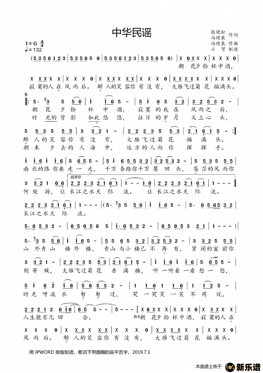 孙浩演唱的中华民谣歌词,中华民谣最新曲谱.