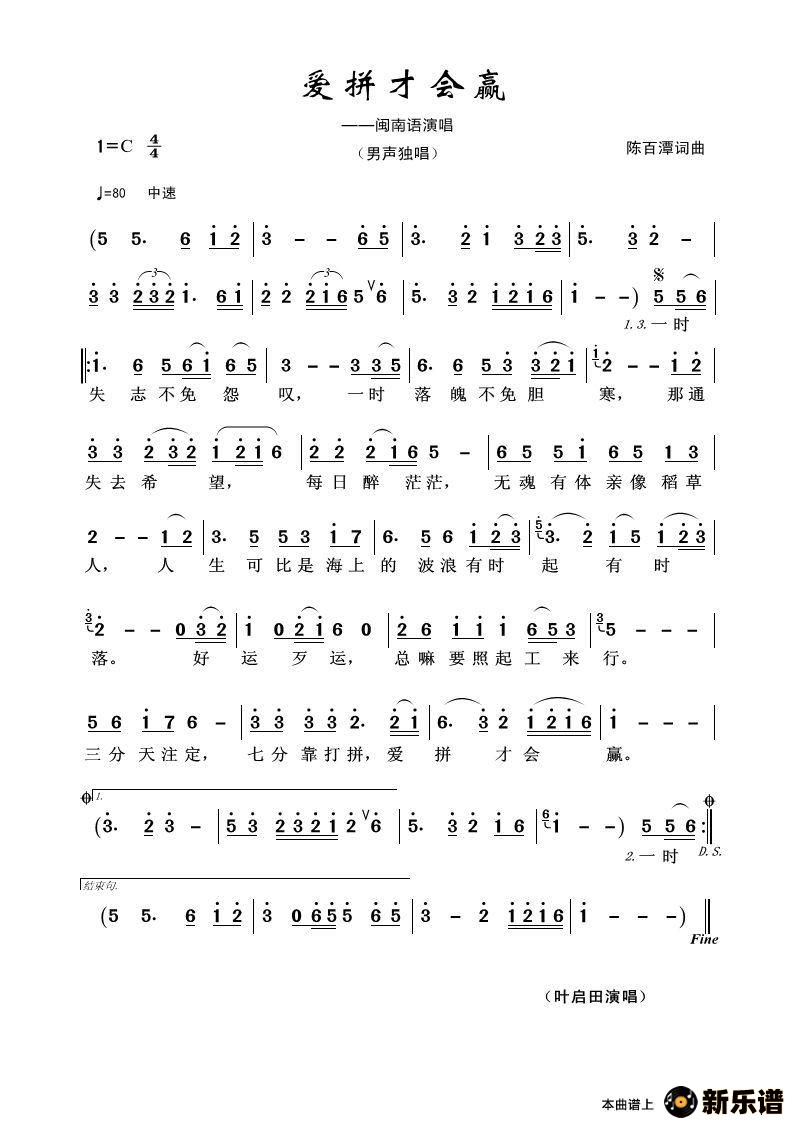 > 爱拼才会赢最新曲谱