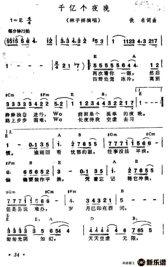 林子祥演唱的千亿个夜晚歌词,千亿个夜晚最新曲谱.