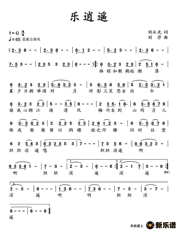 演唱的乐逍遥歌词,乐逍遥最新曲谱.