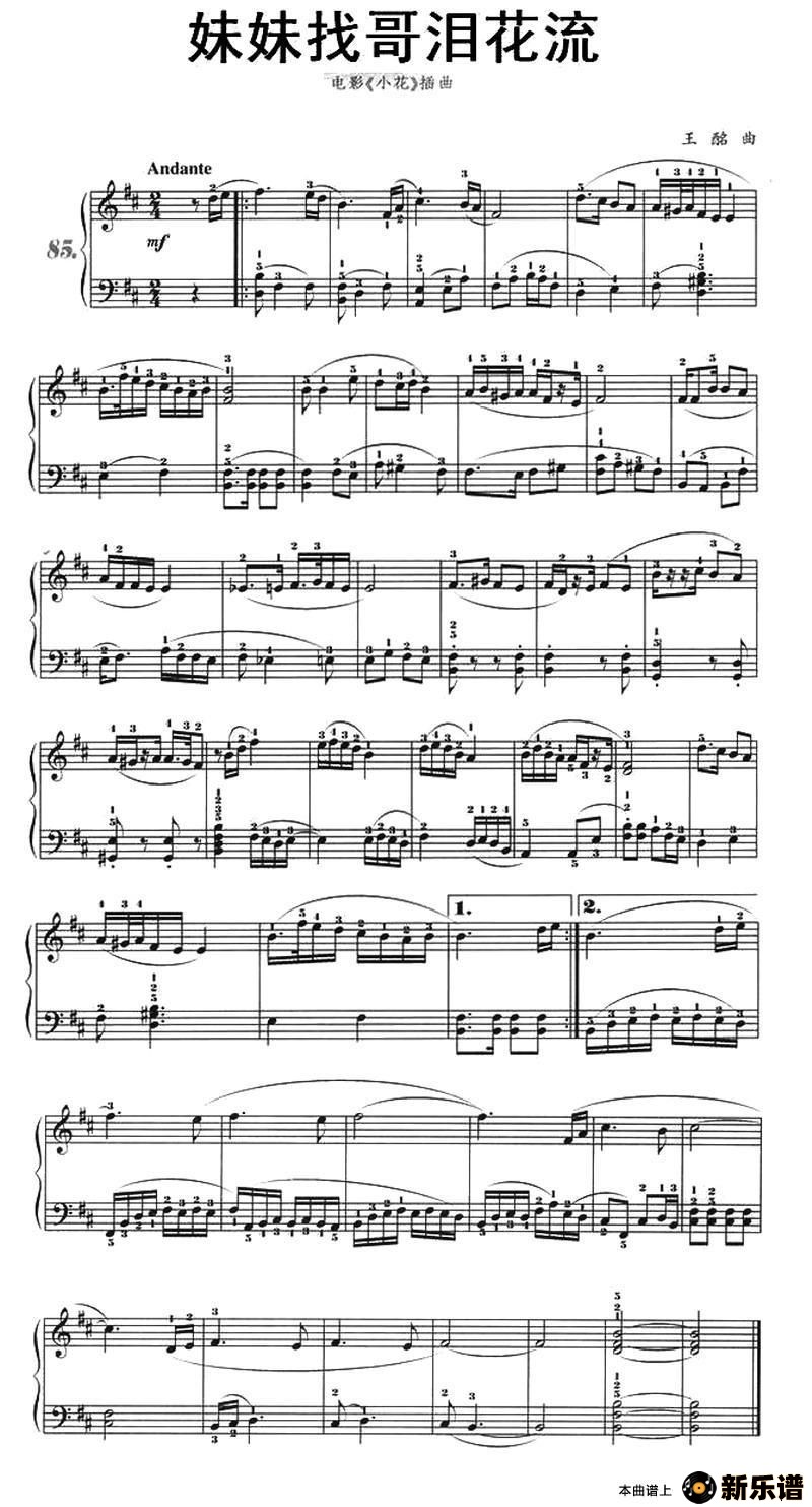 演唱的妹妹找哥泪花流歌词,妹妹找哥泪花流最新曲谱.