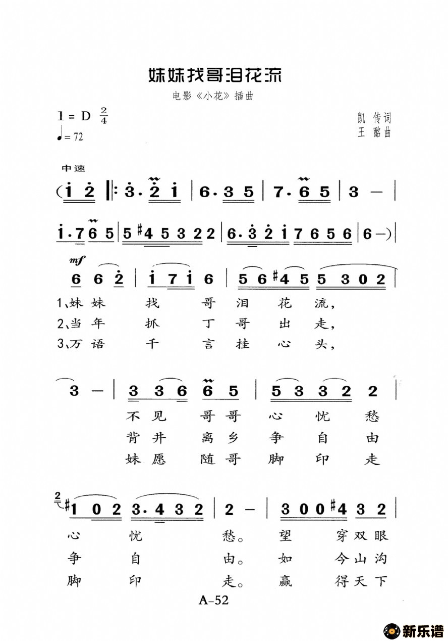 妹妹找哥泪花流最新曲谱
