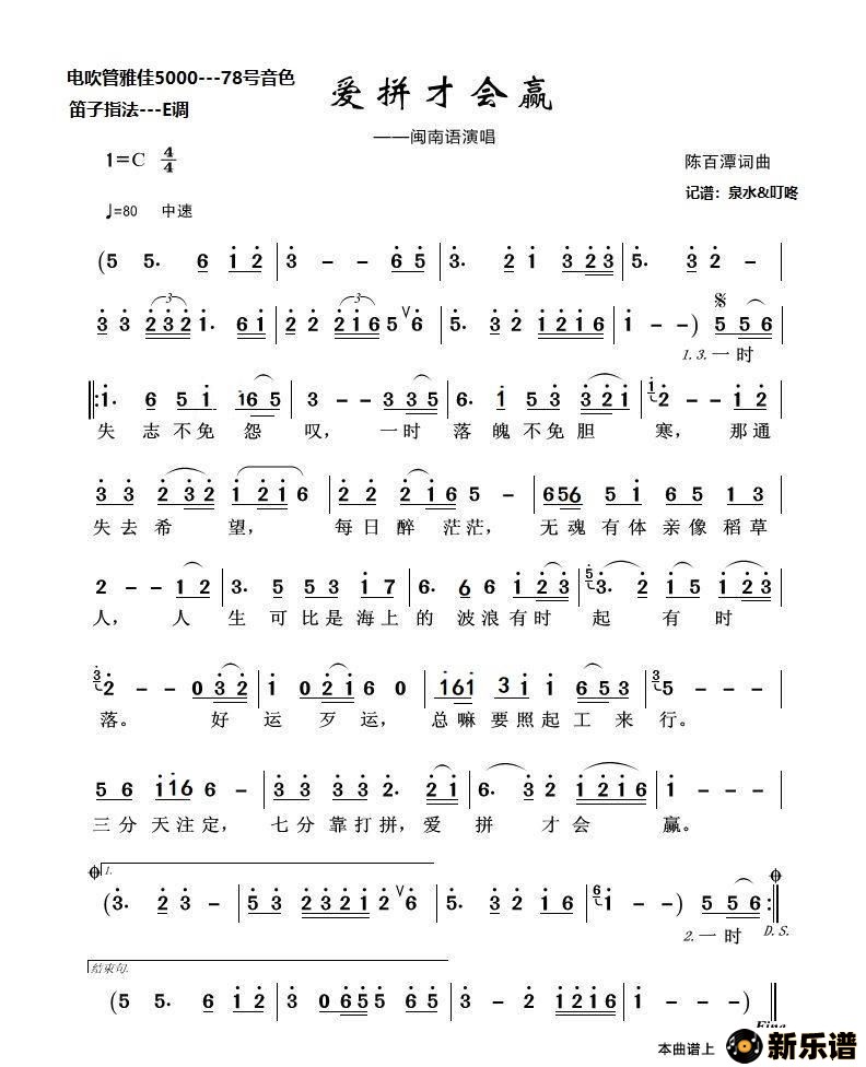 叶启田演唱的爱拼才会赢歌词,爱拼才会赢最新曲谱.
