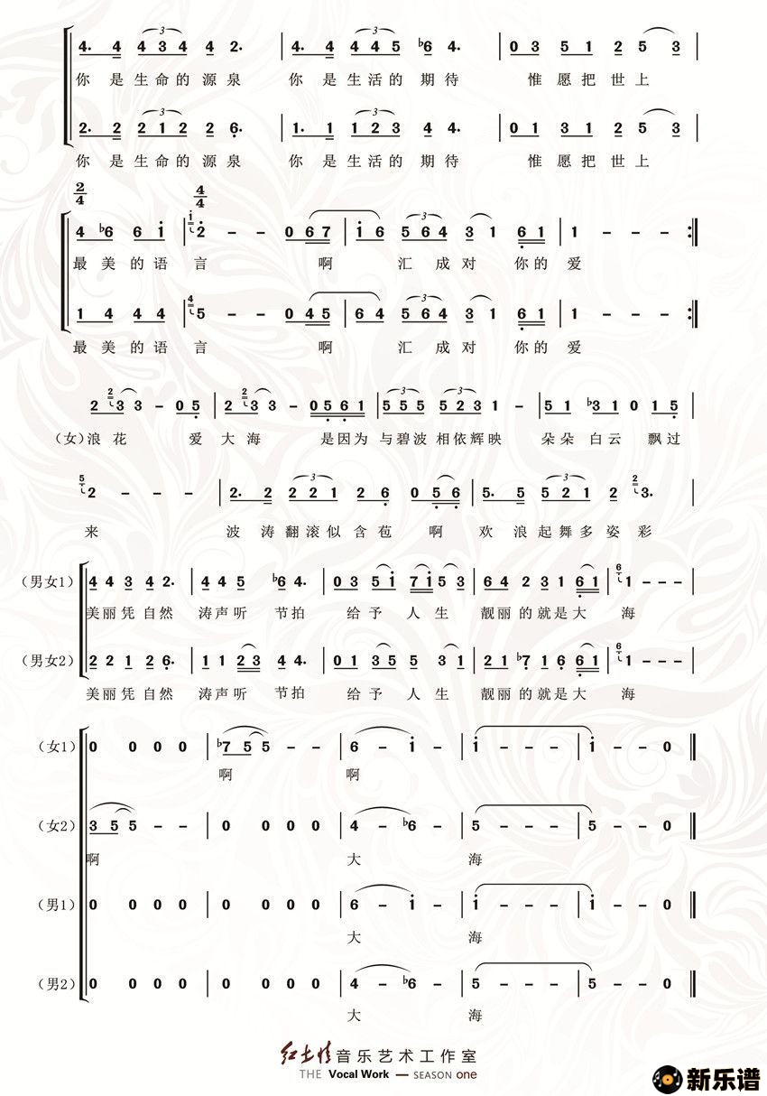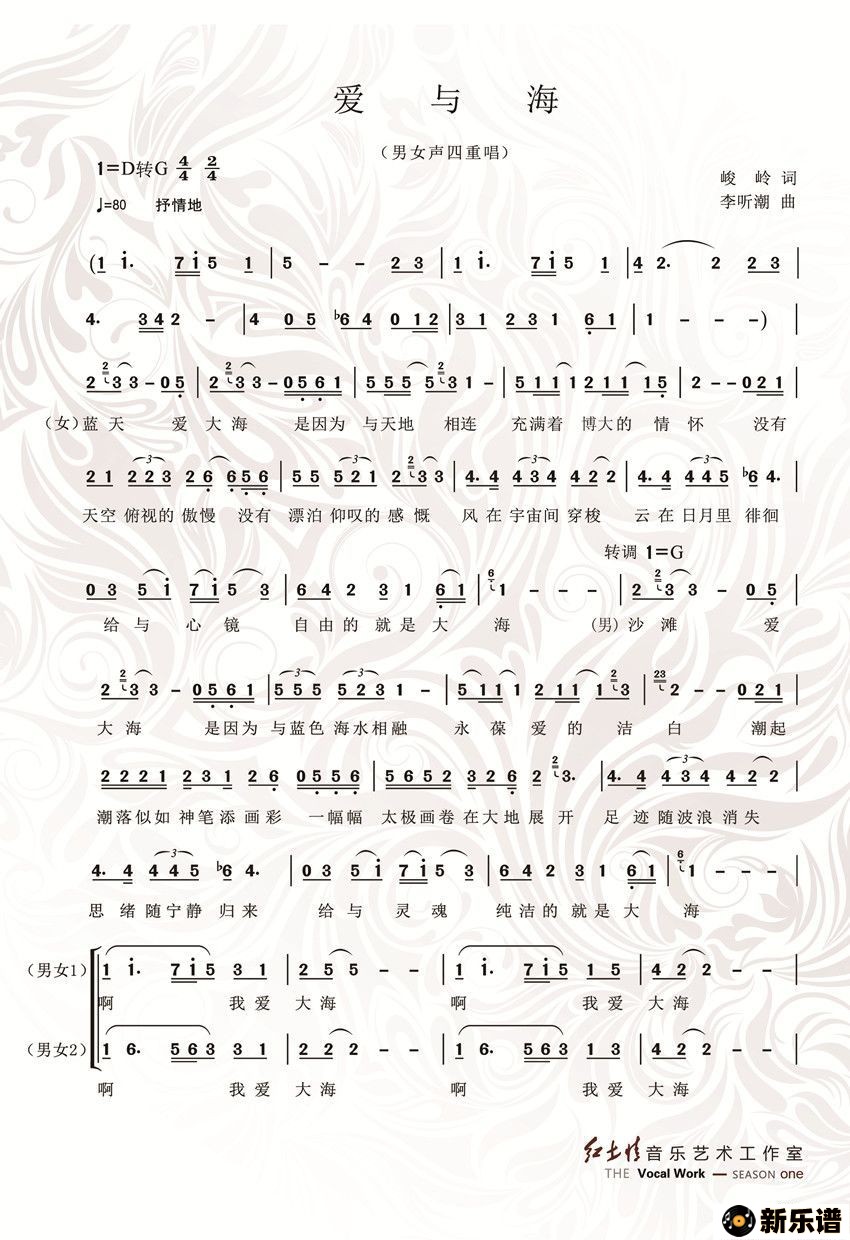 《爱与海》最新曲谱 俸俊喜、杨丽霞 李听潮 李军