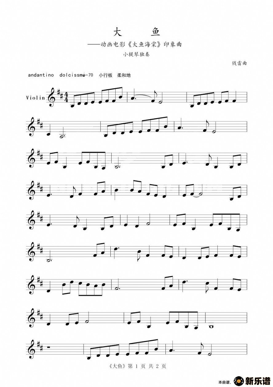 大鱼( 动画电影《大鱼海棠》印象曲)最新曲谱