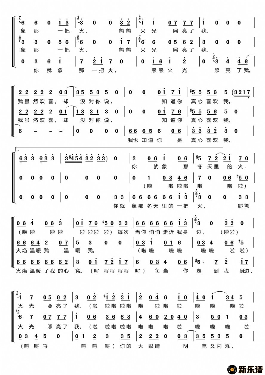 《冬天里的一把火〔梦之旅合唱组合〕》最新曲谱 梦之旅组合