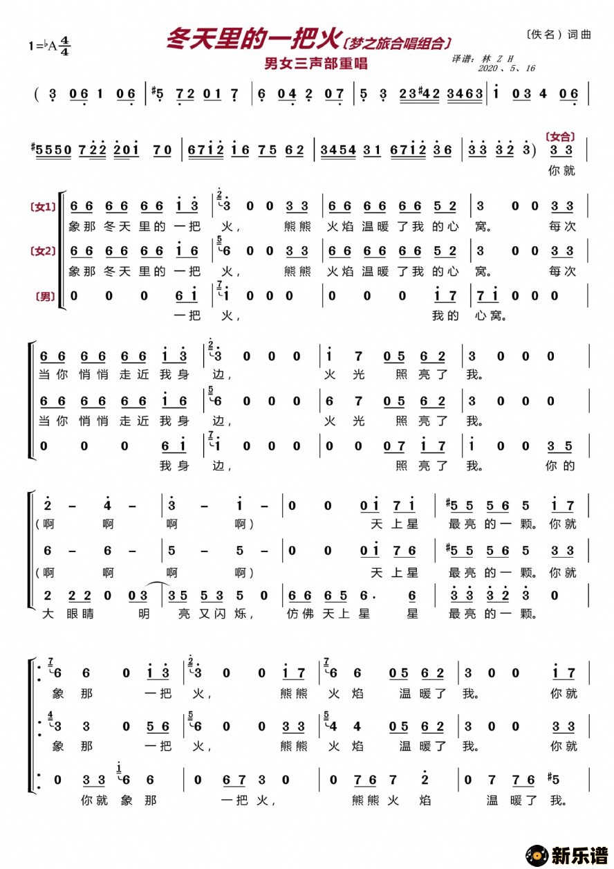 > 冬天里的一把火〔梦之旅合唱组合〕最新曲谱