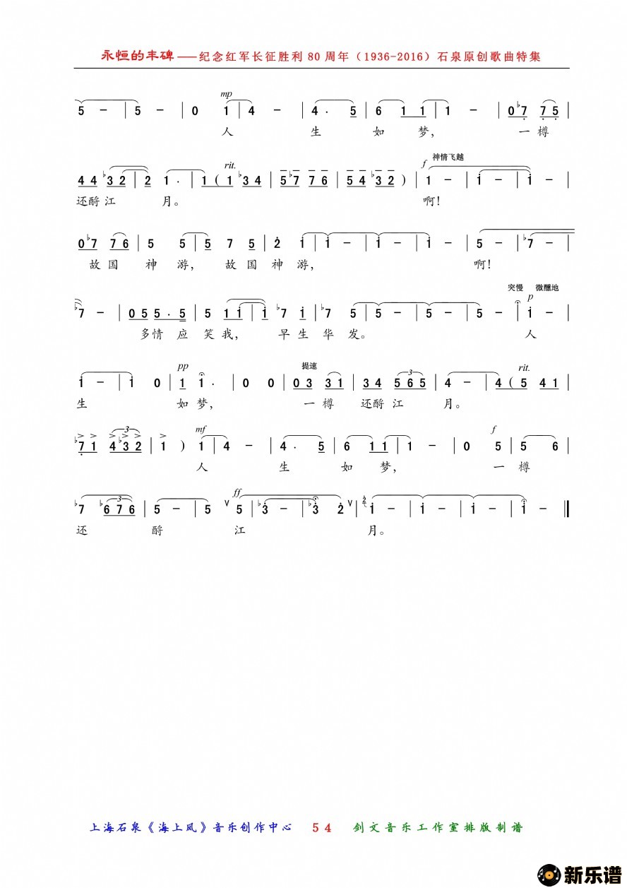 > 念奴娇赤壁怀古最新曲谱