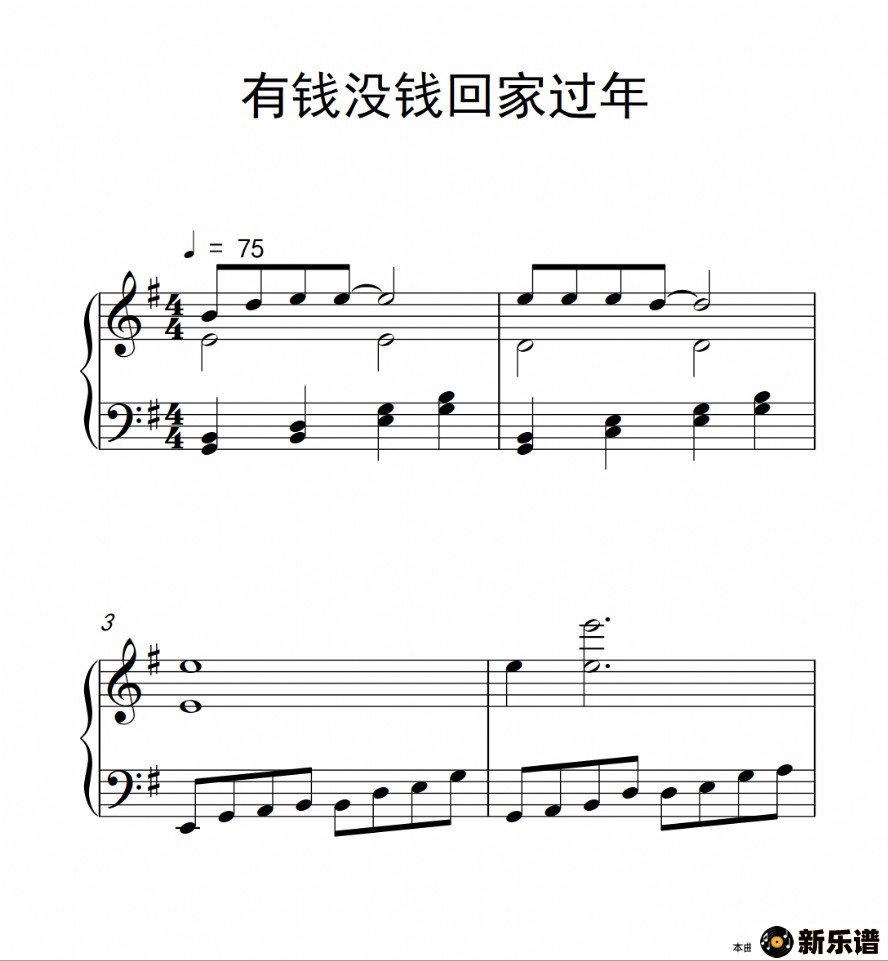 有钱没钱回家过年最新曲谱