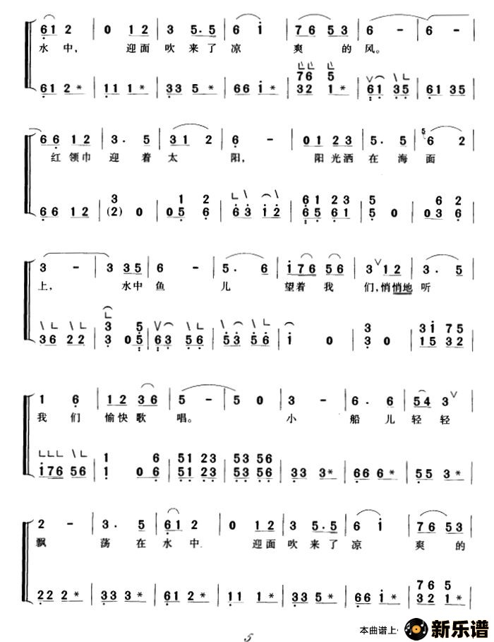 演唱的让我们荡起双桨歌词,让我们荡起双桨最新曲谱.