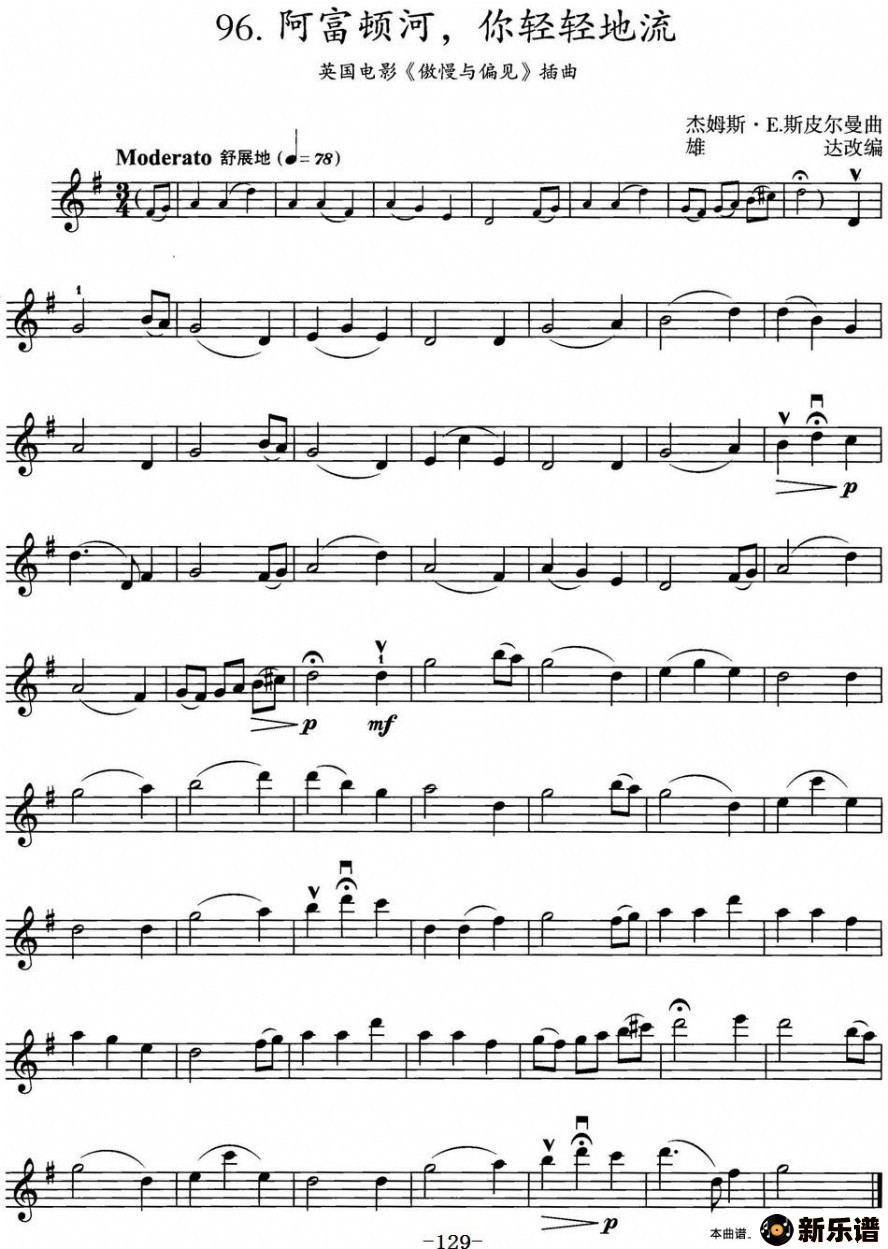 > 阿富顿河,你轻轻地流(美国电影《傲慢与偏见》插曲)最新曲谱
