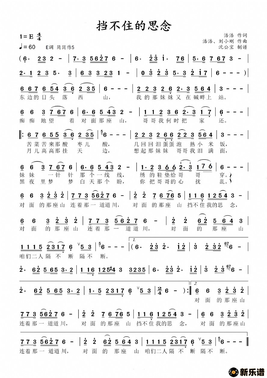 演唱的挡不住的思念歌词,挡不住的思念最新曲谱.