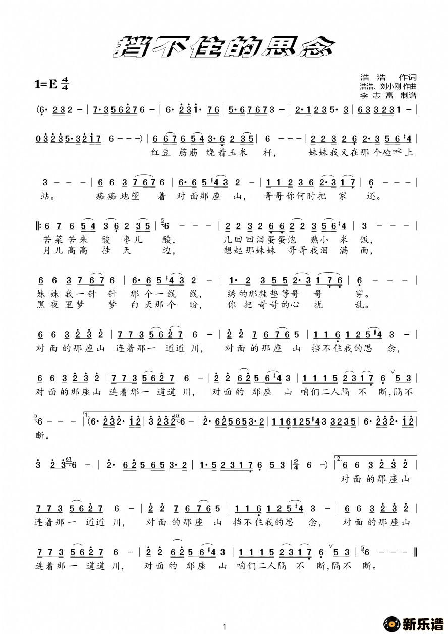 演唱的挡不住的思念歌词,挡不住的思念最新曲谱.
