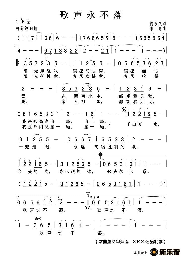 董文华演唱的歌声永不落歌词,歌声永不落最新曲谱.