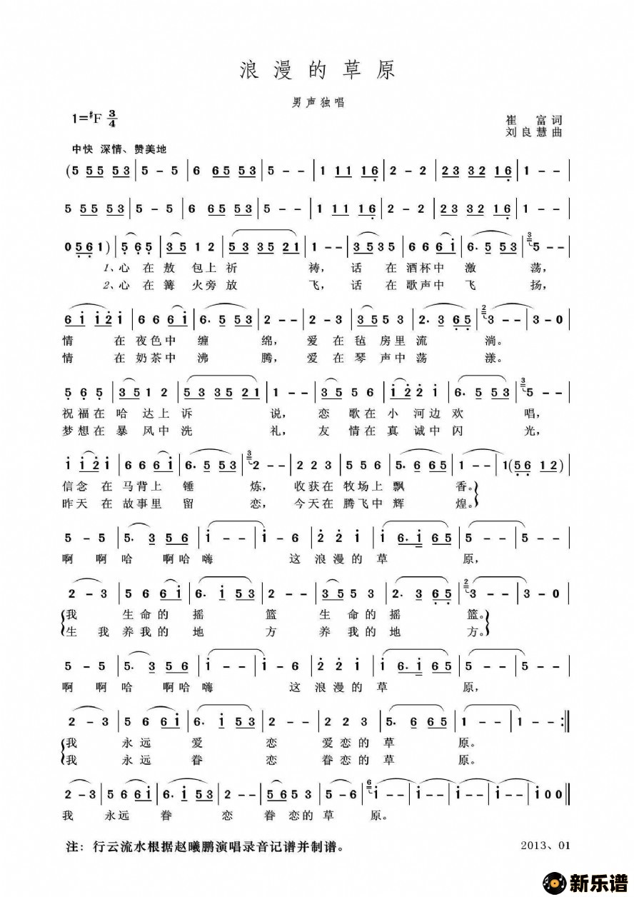赵曦鹏演唱的浪漫的草原歌词,浪漫的草原最新曲谱.