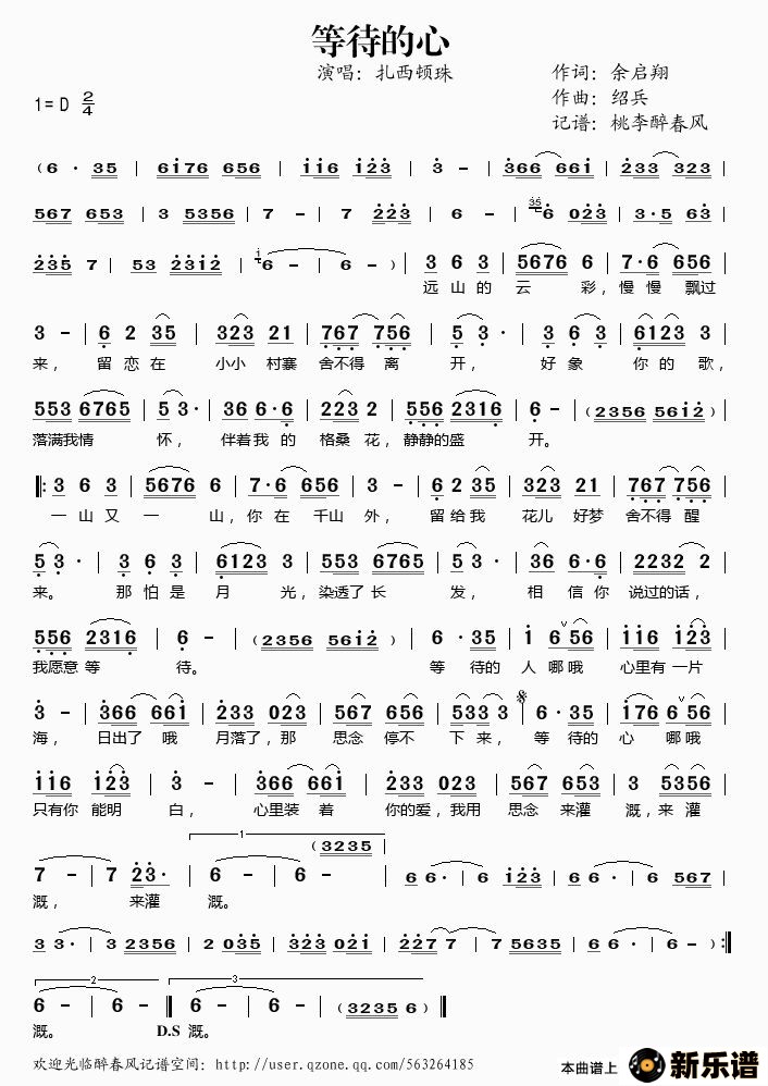 《等待的心》最新曲谱 扎西顿珠-桃李醉春风制谱