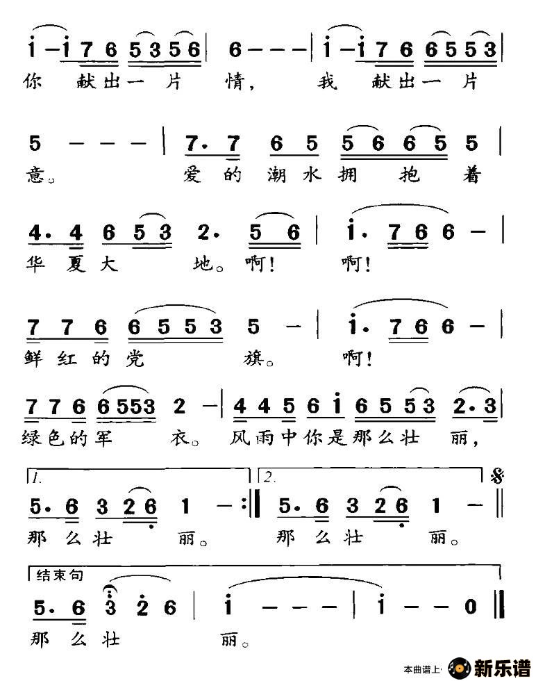 《鲜红的党旗,绿色的军衣》最新曲谱