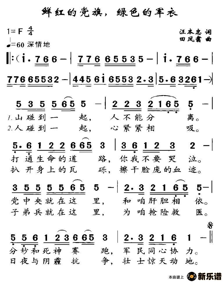 演唱的鲜红的党旗,绿色的军衣歌词,鲜红的党旗,绿色的军衣最新曲谱.