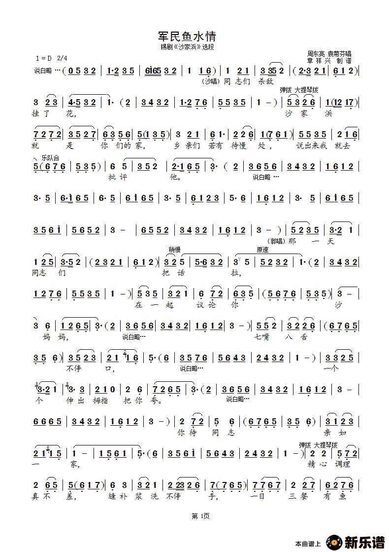 《军民鱼水情》最新曲谱 周东亮 袁菊芬