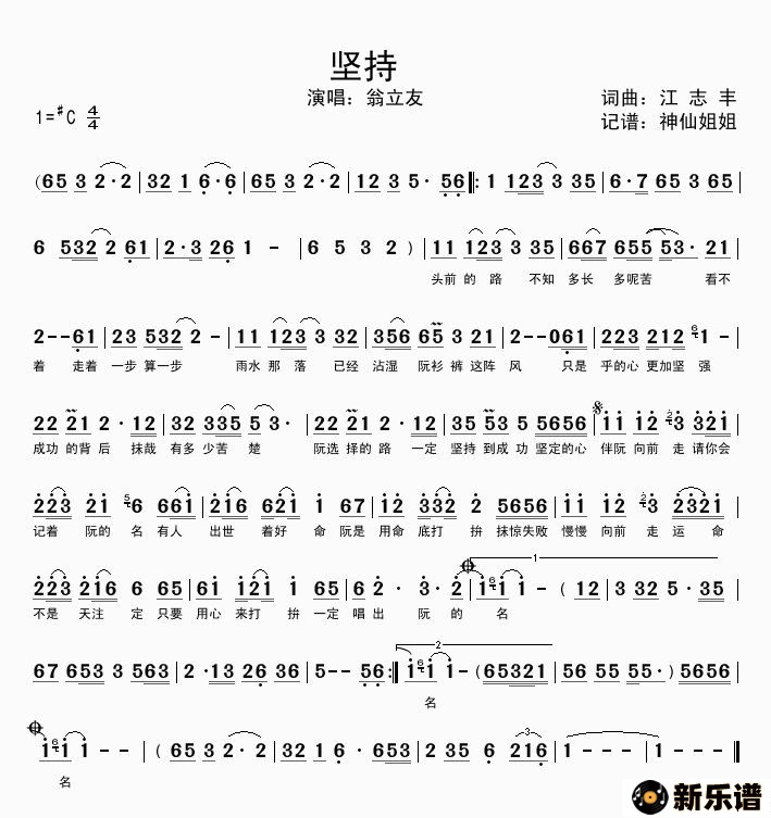 《坚持》最新曲谱 翁立友