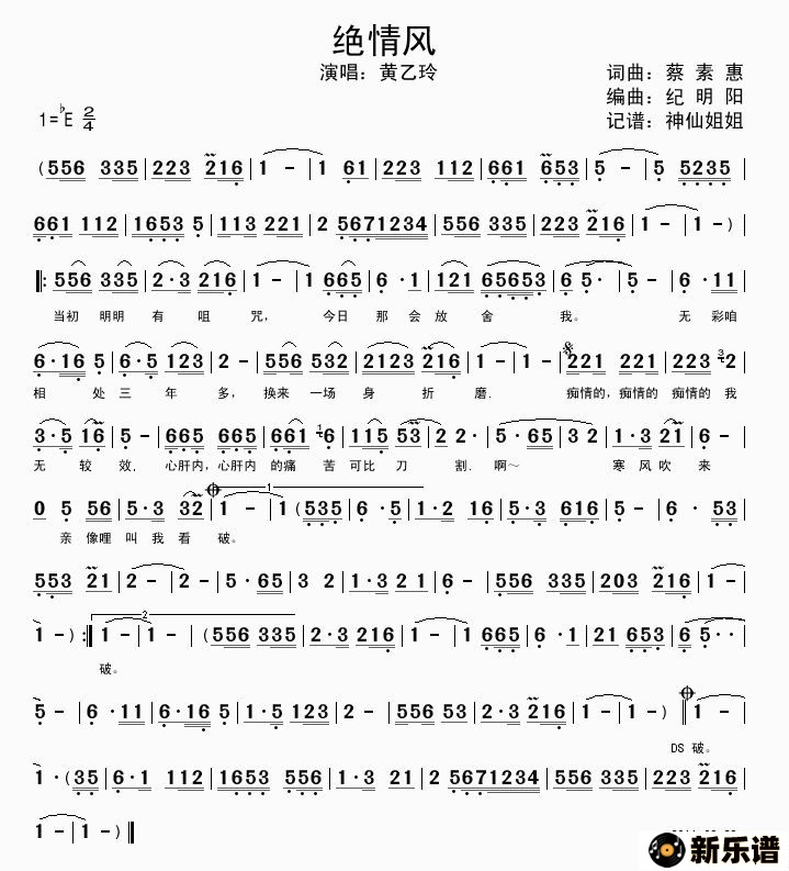 黄已玲演唱的绝情风歌词,绝情风最新曲谱.