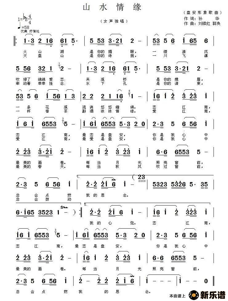 演唱的山水情缘歌词,山水情缘最新曲谱.