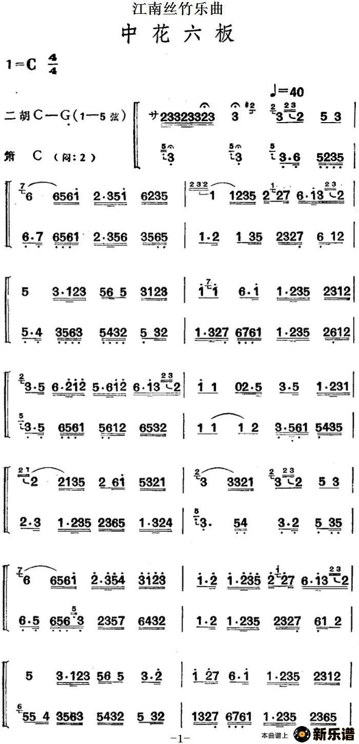 > 江南丝竹乐曲:中花六板最新曲谱