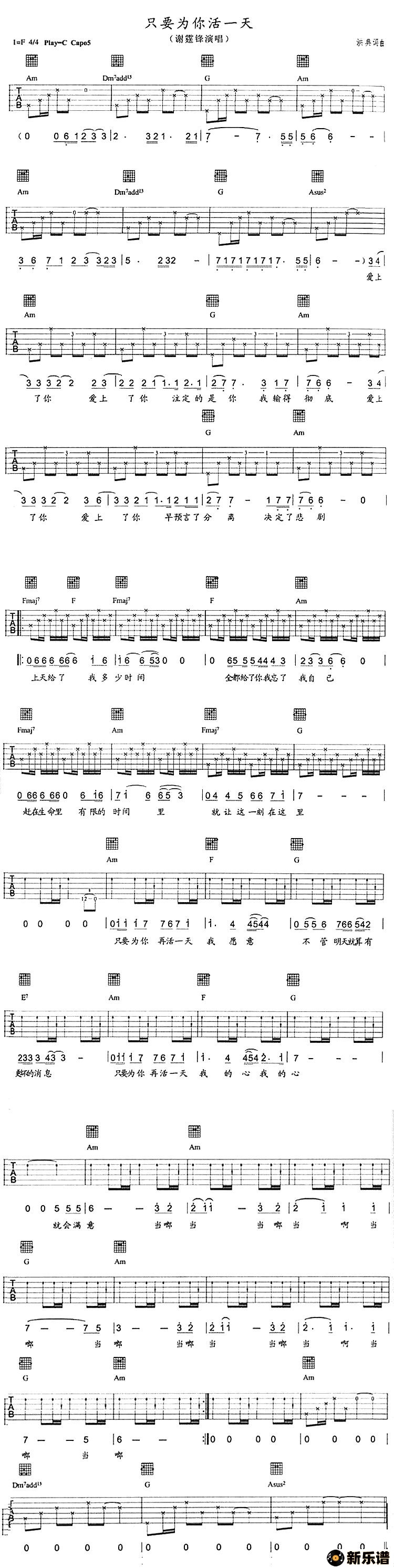 谢霆锋演唱的只要为你活一天歌词,只要为你活一天最新曲谱.