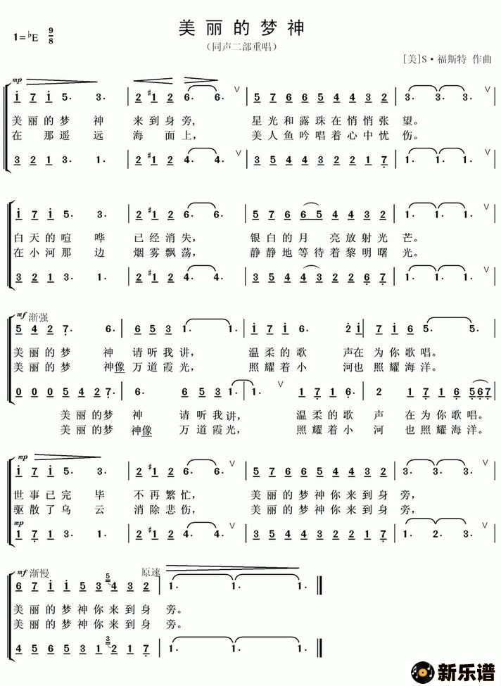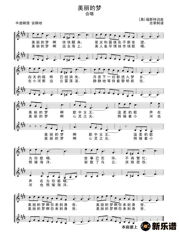 演唱的【美】 美丽的梦神歌词,【美】 美丽的梦神最新曲谱.