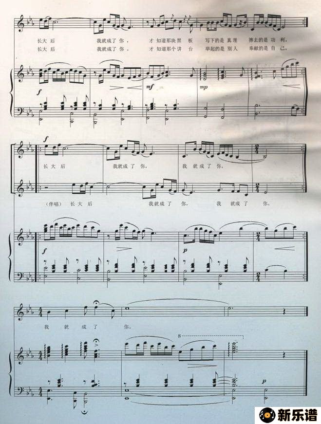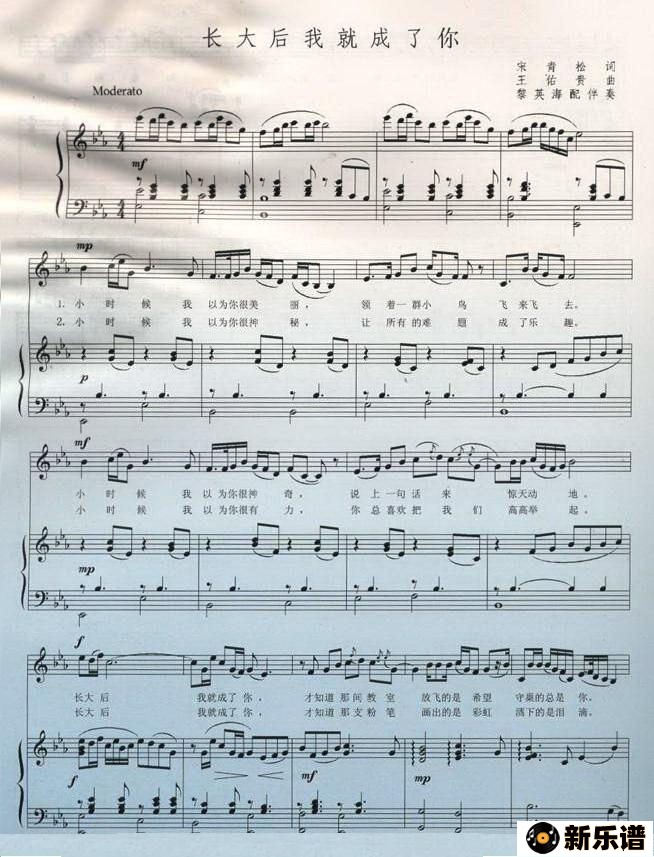 宋祖英演唱的长大后我就成了你歌词,长大后我就成了你最新曲谱.