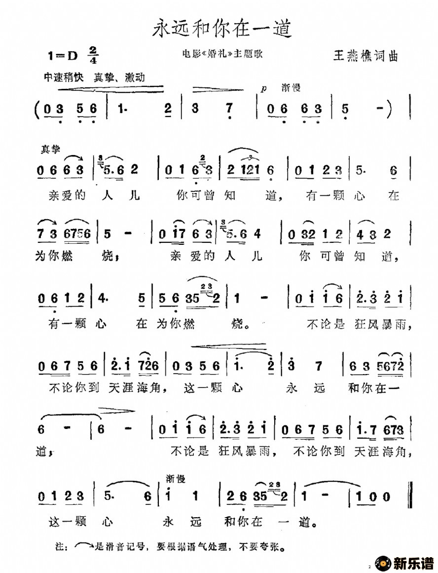 演唱的永远和你在一道(电影《婚礼》主题曲)歌词,永远和你在一道(电影《婚礼》主题曲)最新曲谱.