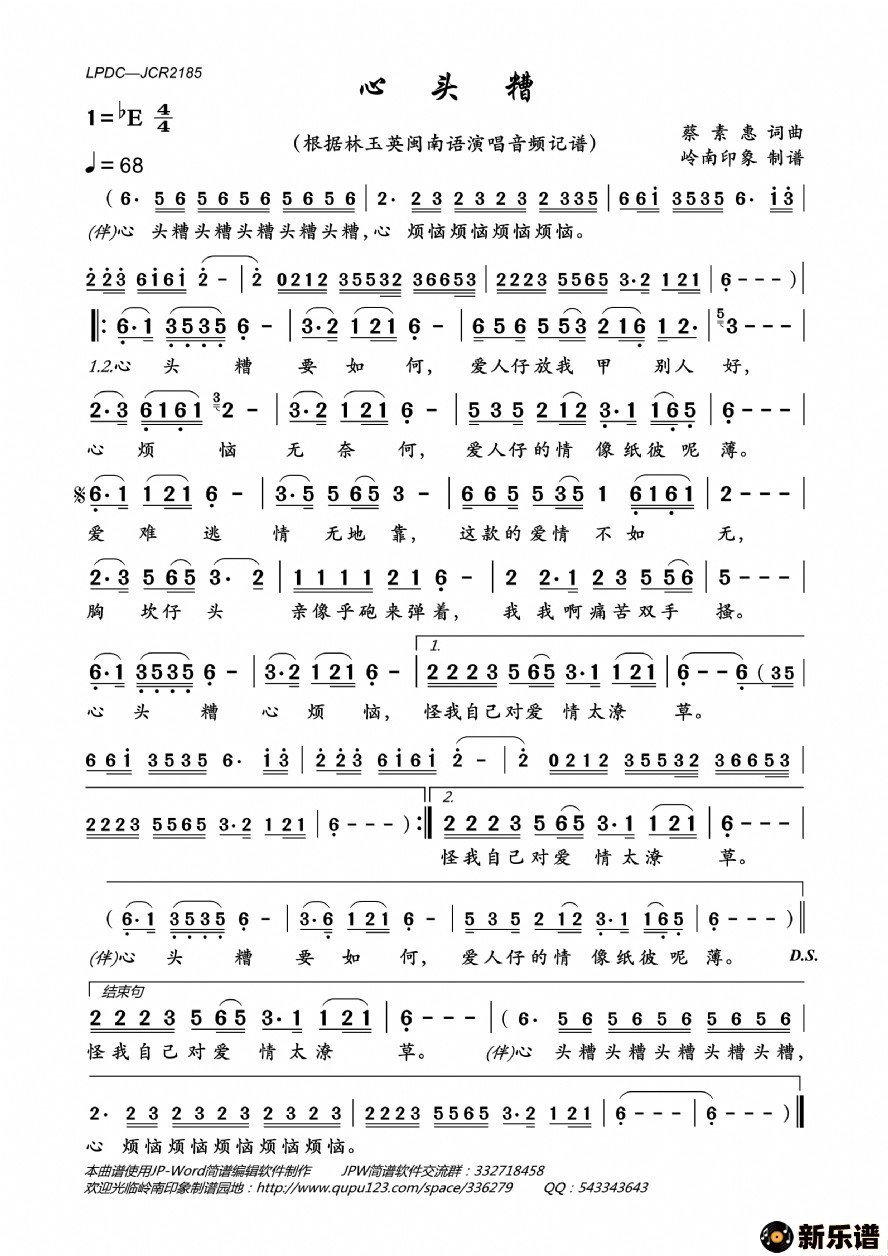 《心头糟》最新曲谱 林玉英-岭南印象制谱
