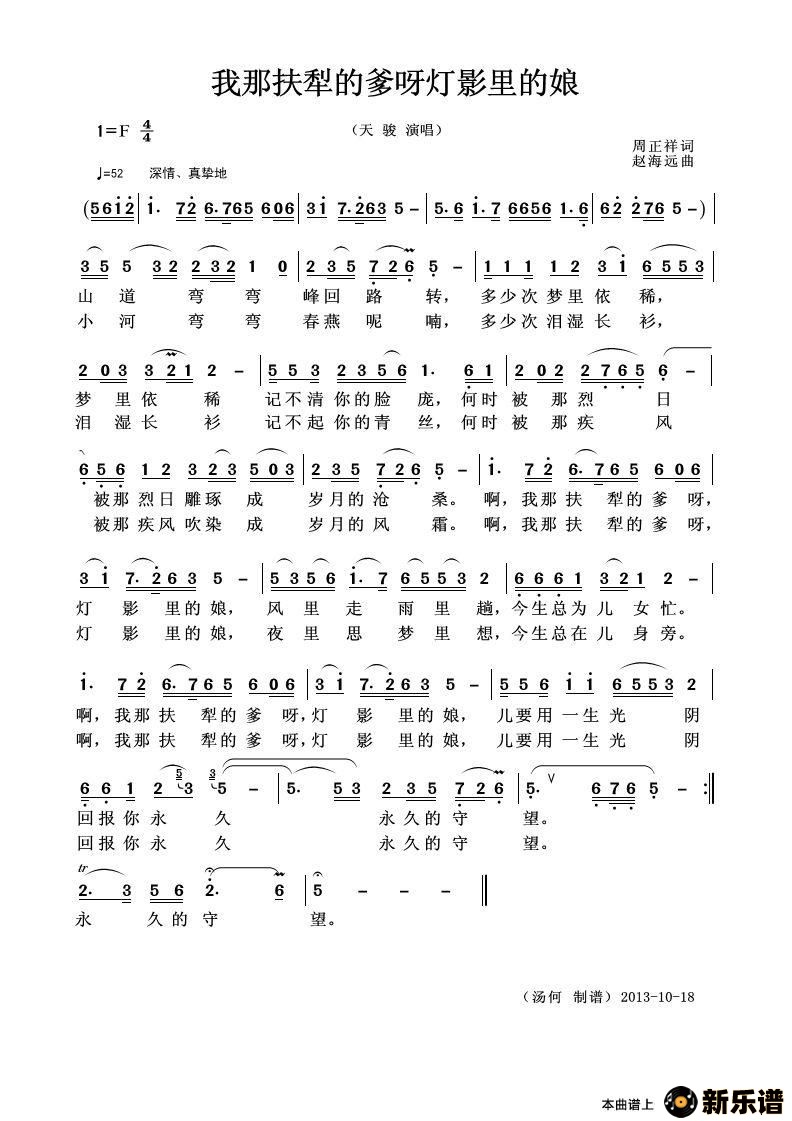 《我那扶犁的爹呀灯影里的娘》最新曲谱 天骏
