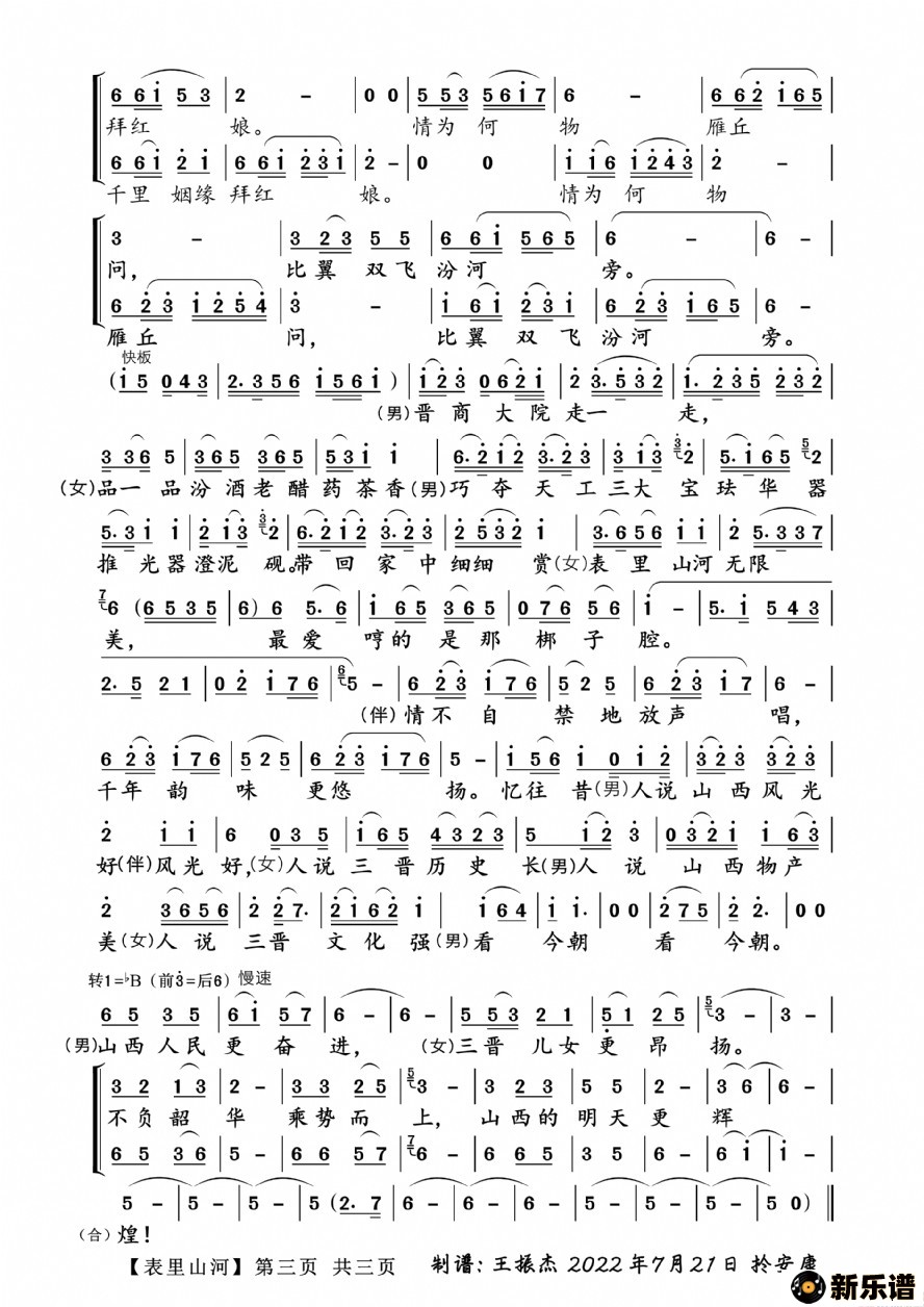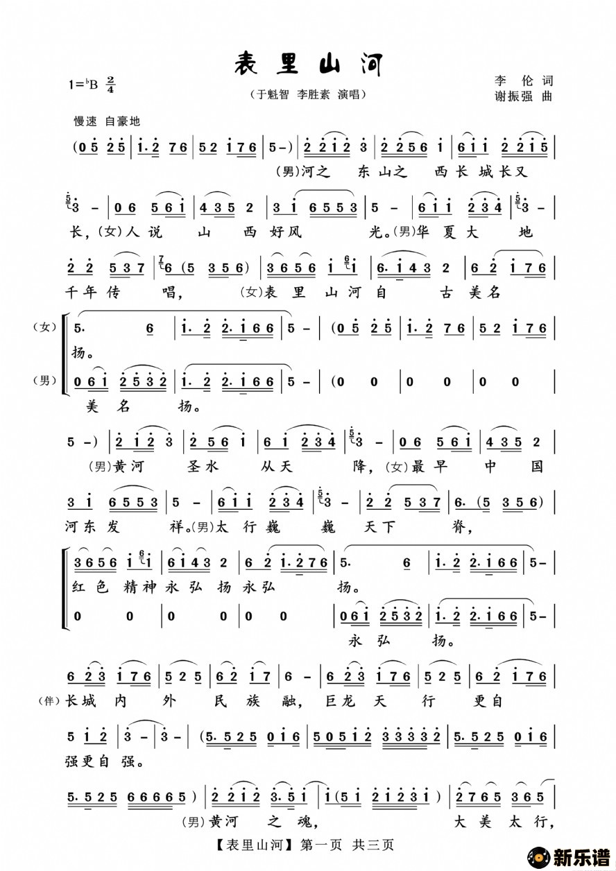 于魁智 李胜素演唱的表里山河歌词,表里山河最新曲谱.