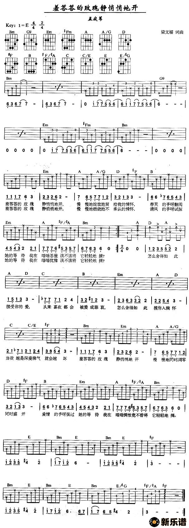《羞答答的玫瑰静悄悄地开》最新曲谱 孟庭苇