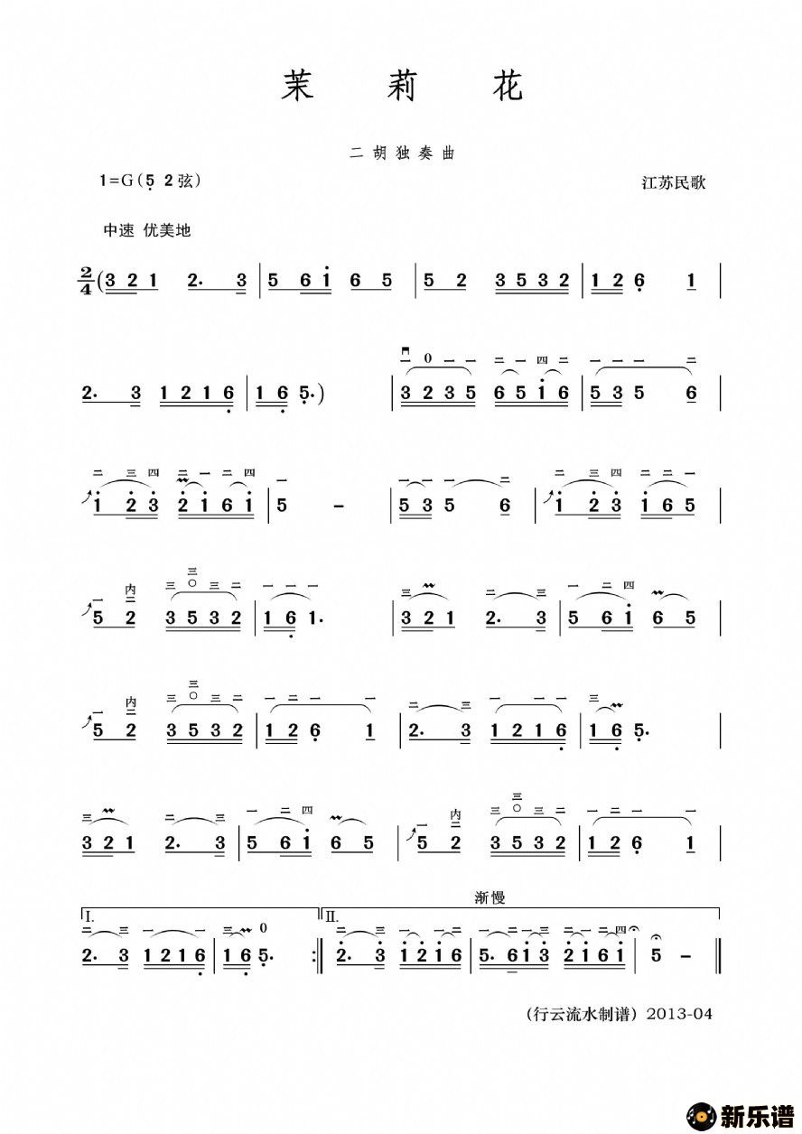 作曲:江苏民歌(二胡独奏曲)