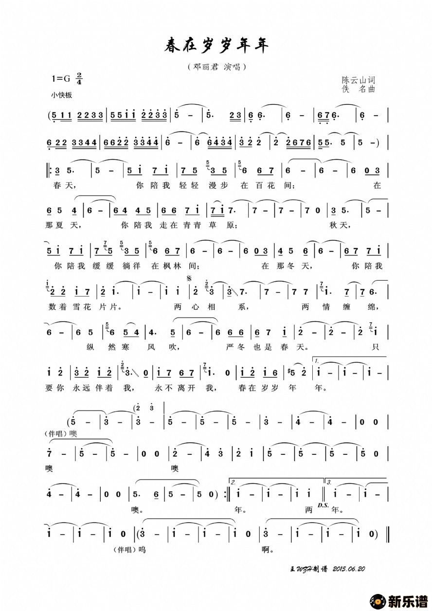 邓丽君演唱的春在岁岁年年歌词,春在岁岁年年最新曲谱.