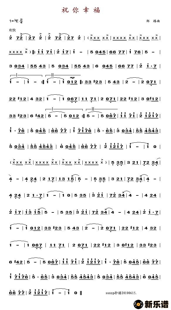 演唱的祝你幸福歌词,祝你幸福最新曲谱.
