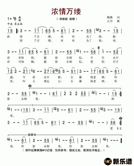 《浓情万缕》最新曲谱 邓丽君