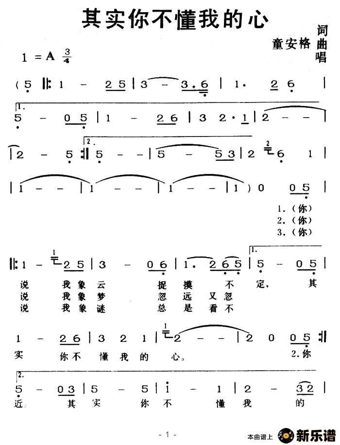 《其实你不懂我的心》最新曲谱 童安格