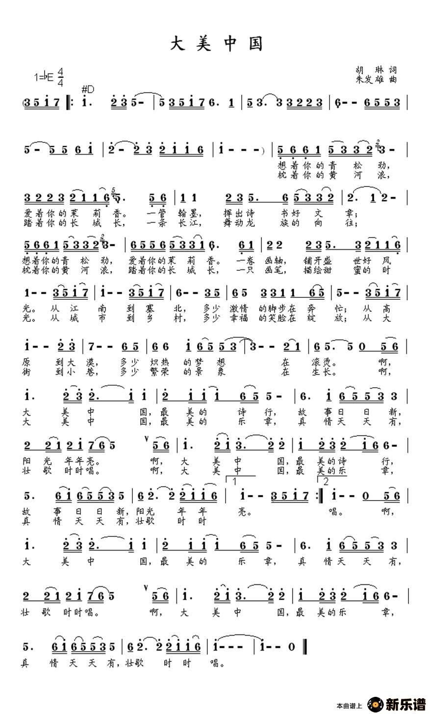 大美中国最新曲谱