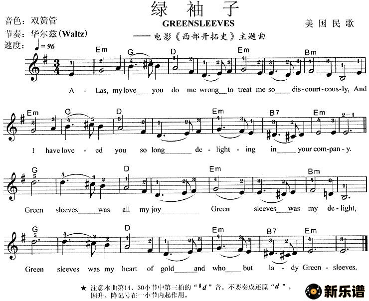 绿袖子 greensleeves(电影《西部开拓史》主题曲) 演唱的绿袖子 greensleeves(电影《西部开拓史》主题曲)歌词,绿袖子 greensleeves(电影《西部开拓史》主题曲)最新曲谱. 版本一:转自金色风铃网版本二:关瑞红著《电子琴入门教程》乐谱