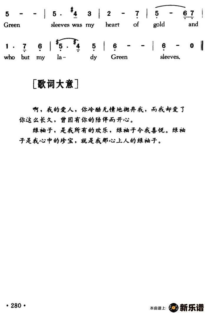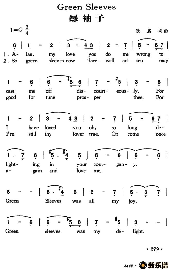 演唱的green sleeves歌词,green sleeves最新曲谱.