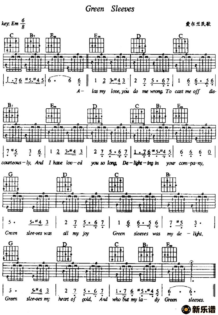 演唱的green sleeves歌词,green sleeves最新曲谱.