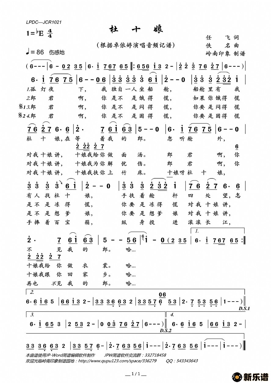 《杜十娘》最新曲谱 卓依婷-岭南印象制谱