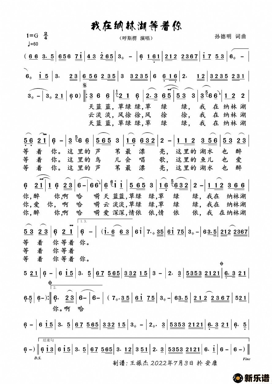 《我在纳林湖等着你》最新曲谱 呼斯楞