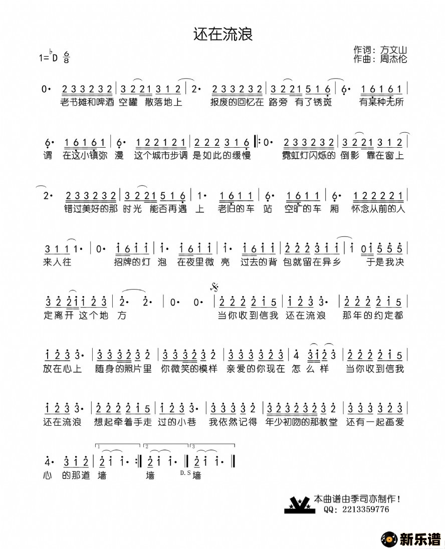 周杰伦演唱的还在流浪歌词,还在流浪最新曲谱.