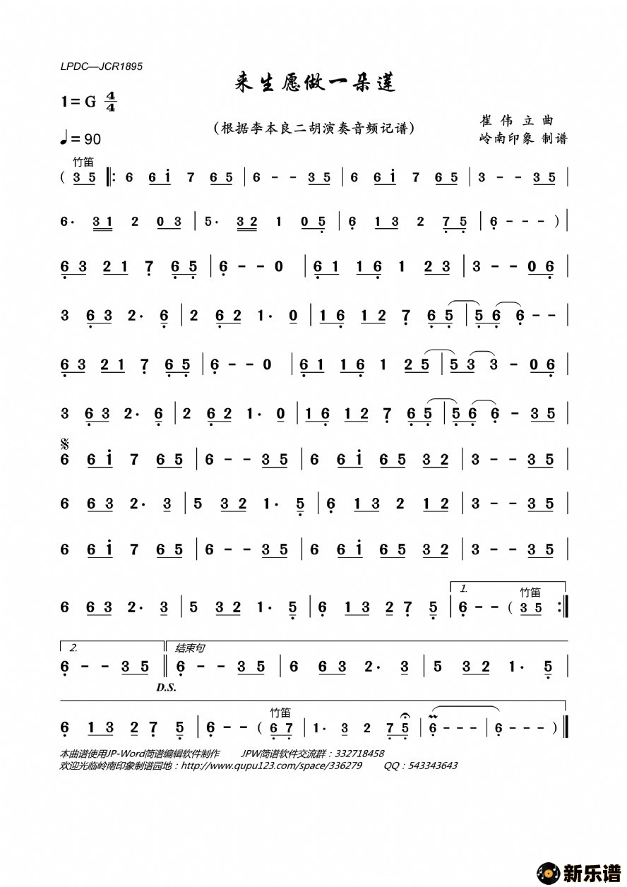 《来生愿做一朵莲》最新曲谱 李本良-岭南印象制谱