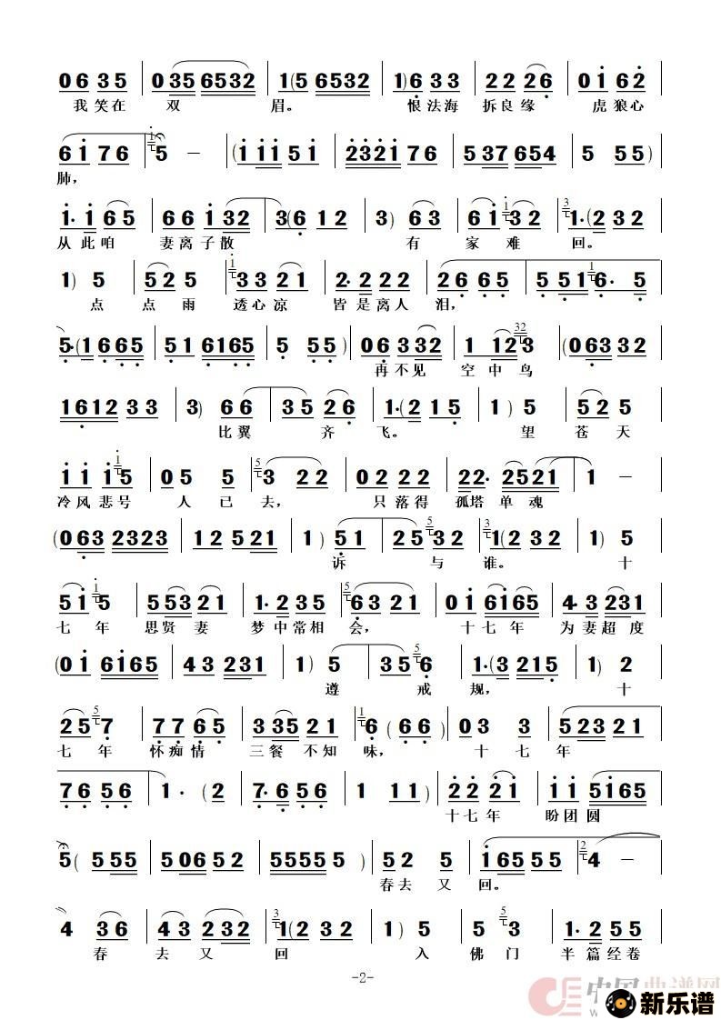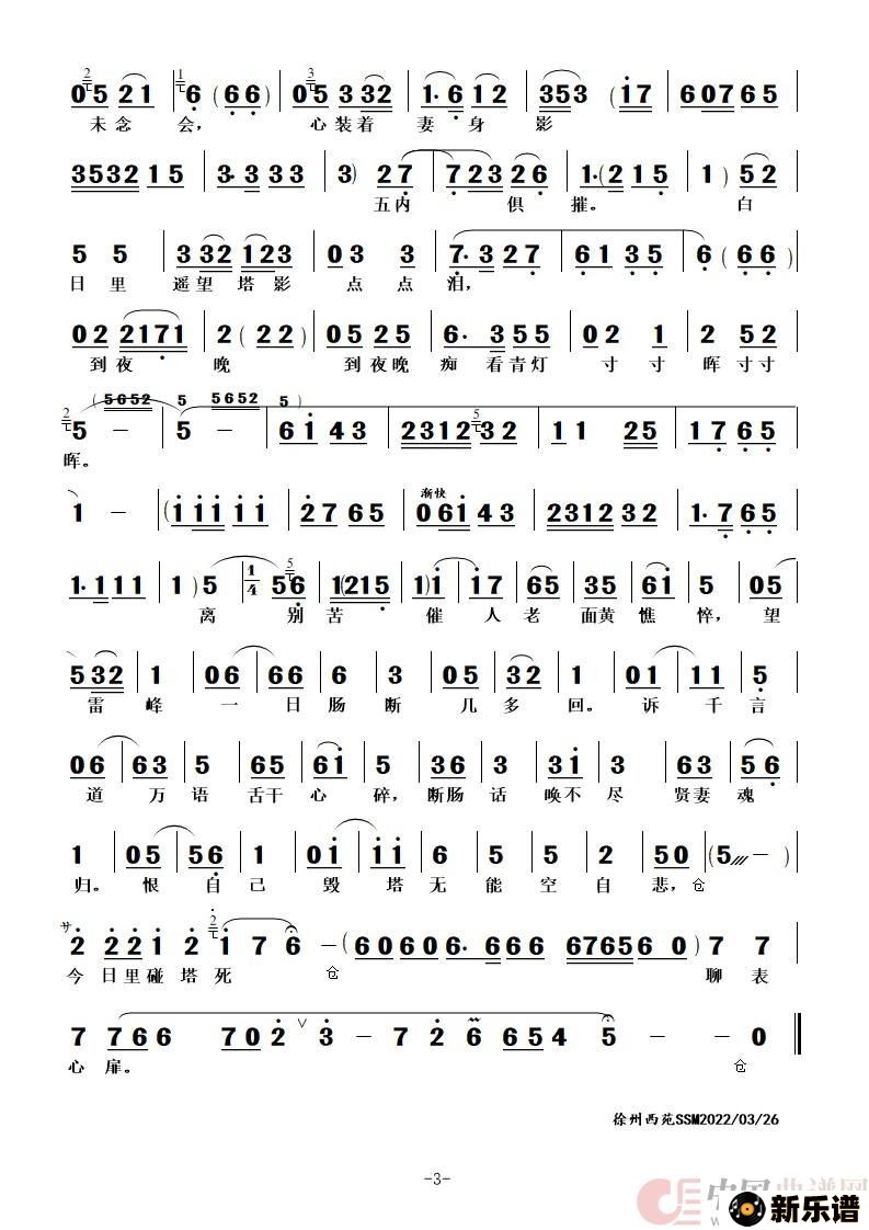 《眼望着雷峰塔双膝扎跪》最新曲谱 赵金声